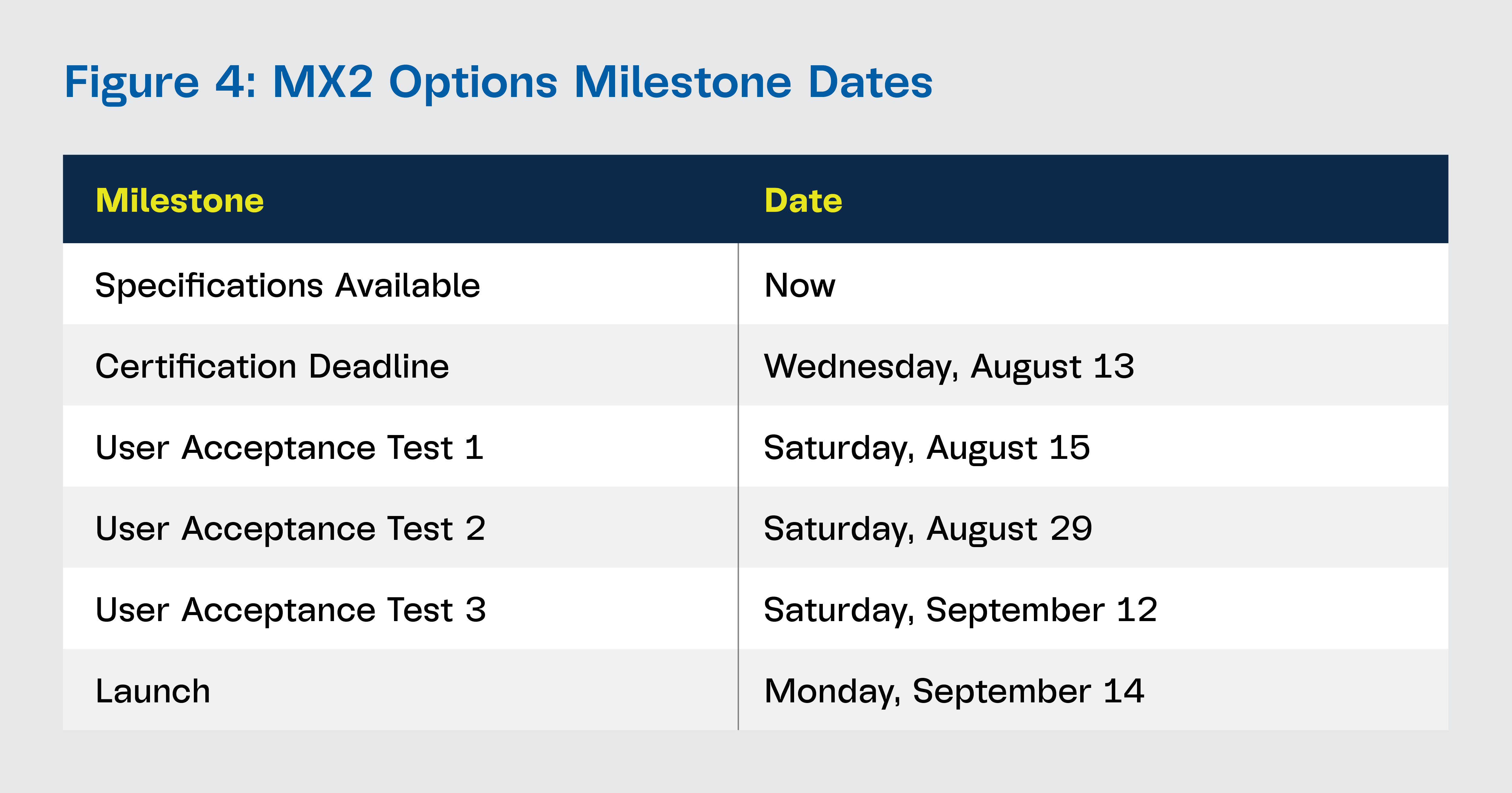 MX2 Options announced a September 14, 2026 launch date and additional milestone dates.